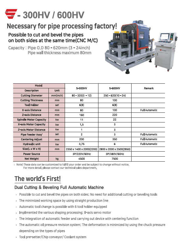 • The world's first dual cutting and beveling full automatic machine