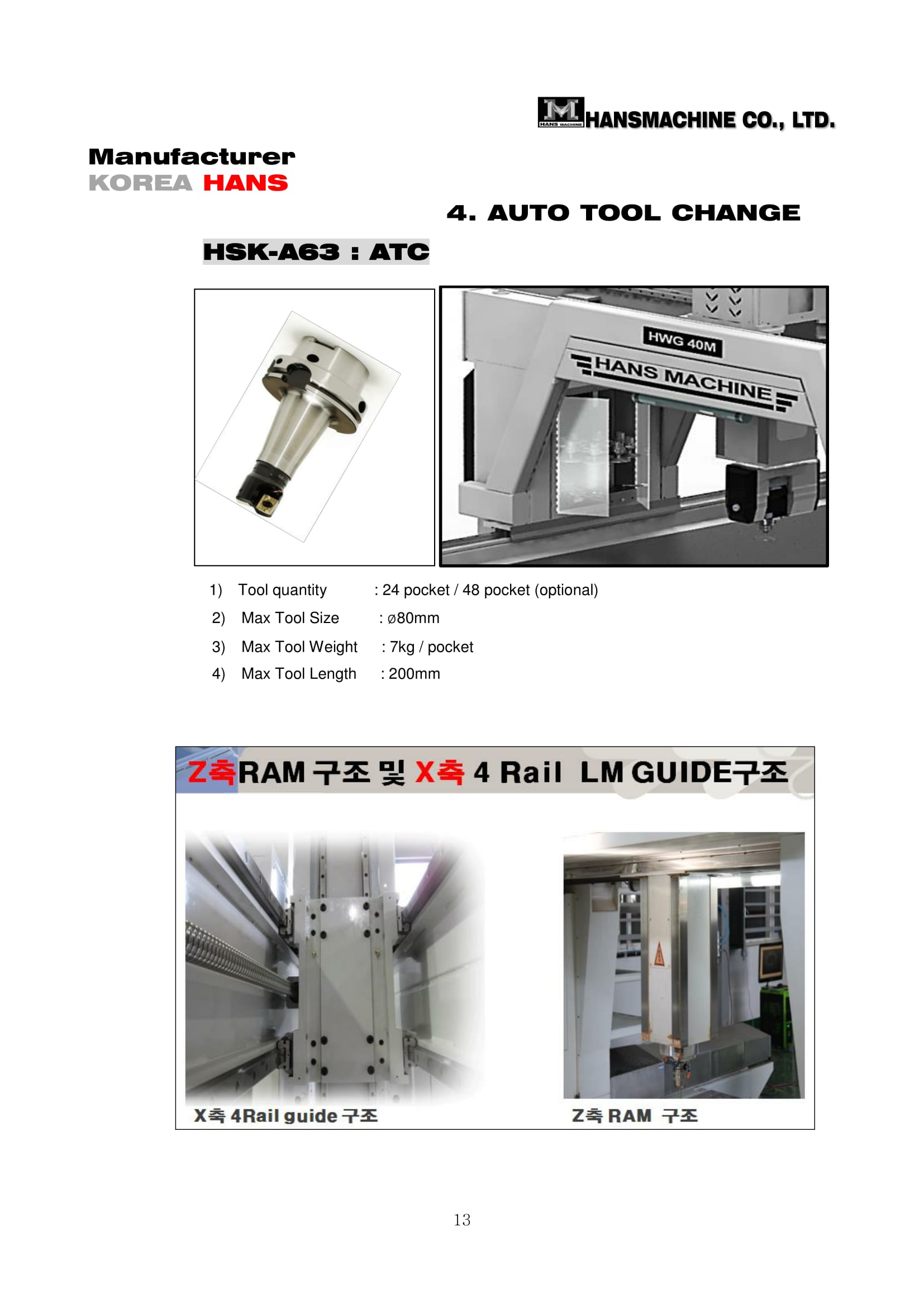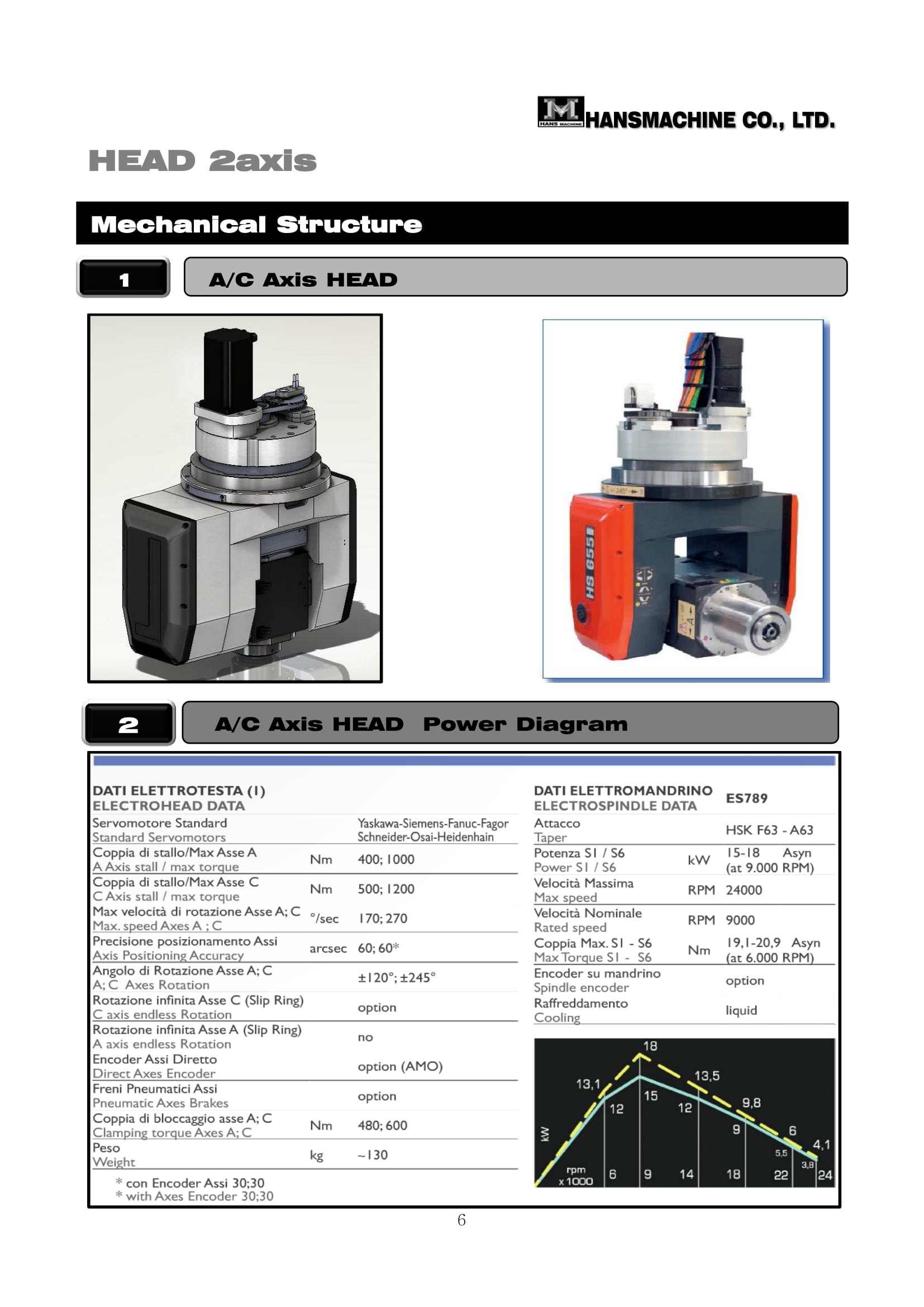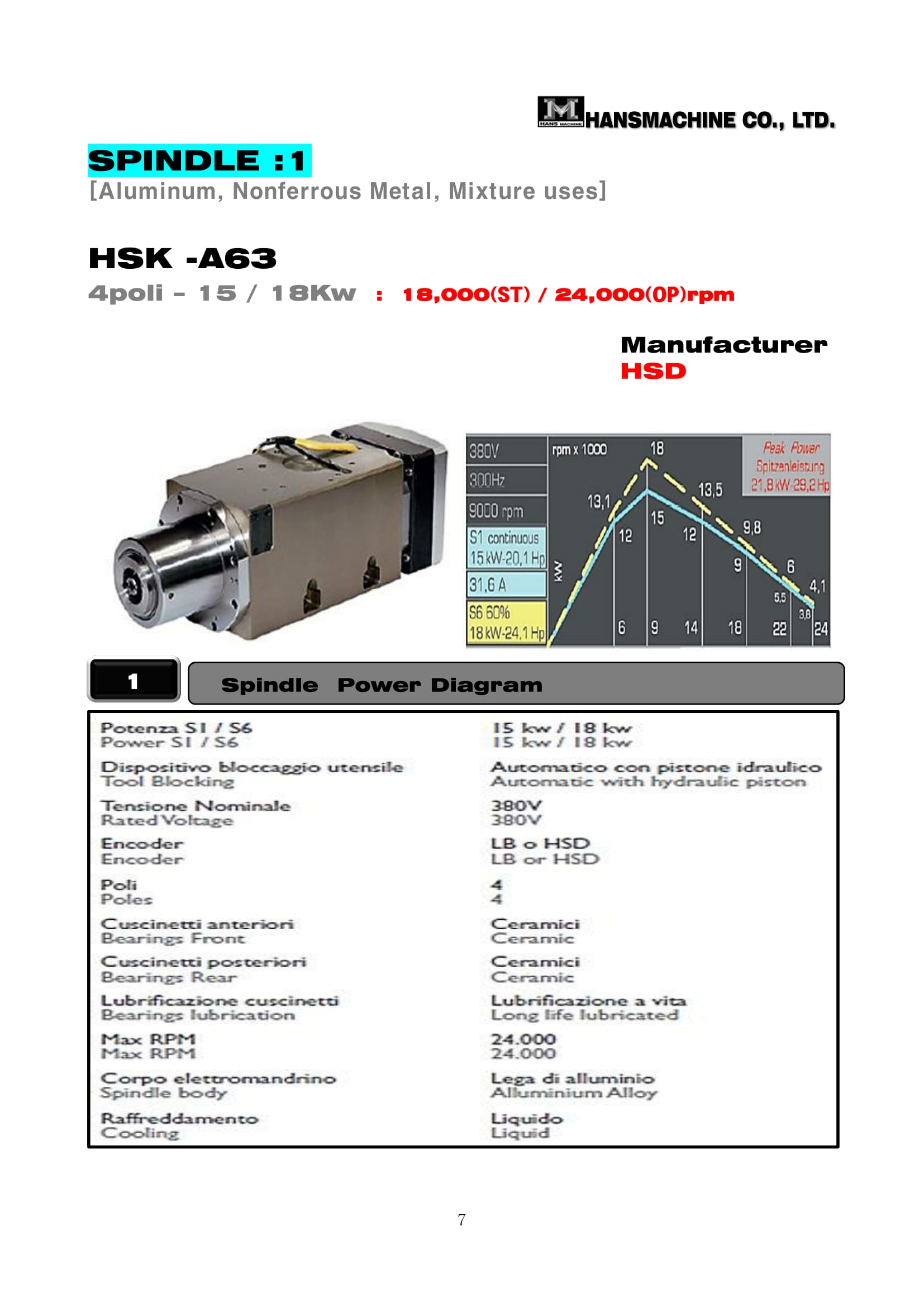 ∙ [ HSK-A 63 – standard/optional] : 15 - 18 Kw – 18,000 /24,000rpm