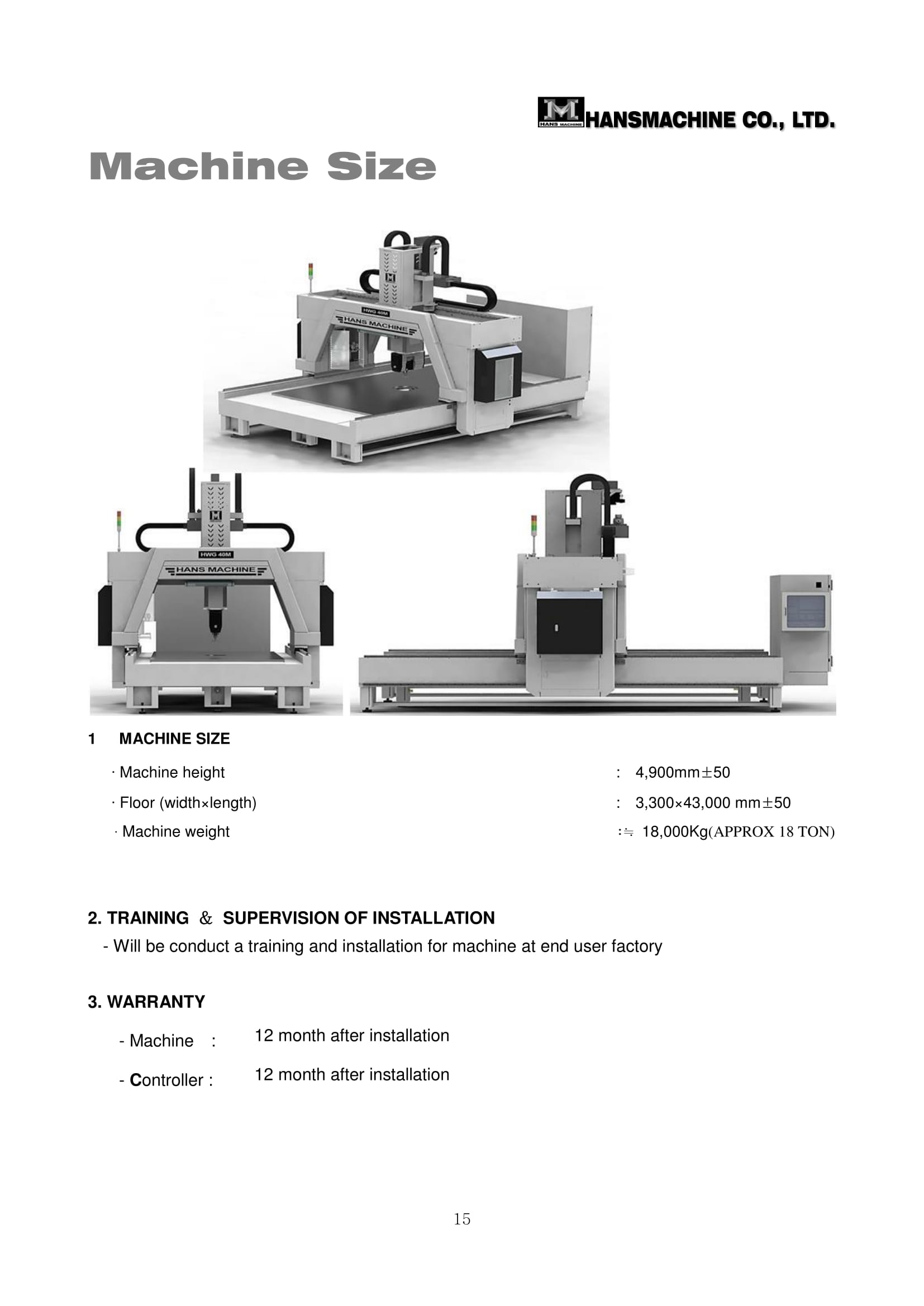 ∙ X-Y-Z axis travel (table longitudinal stroke) : 2,050 X 3,050 X 700 mm