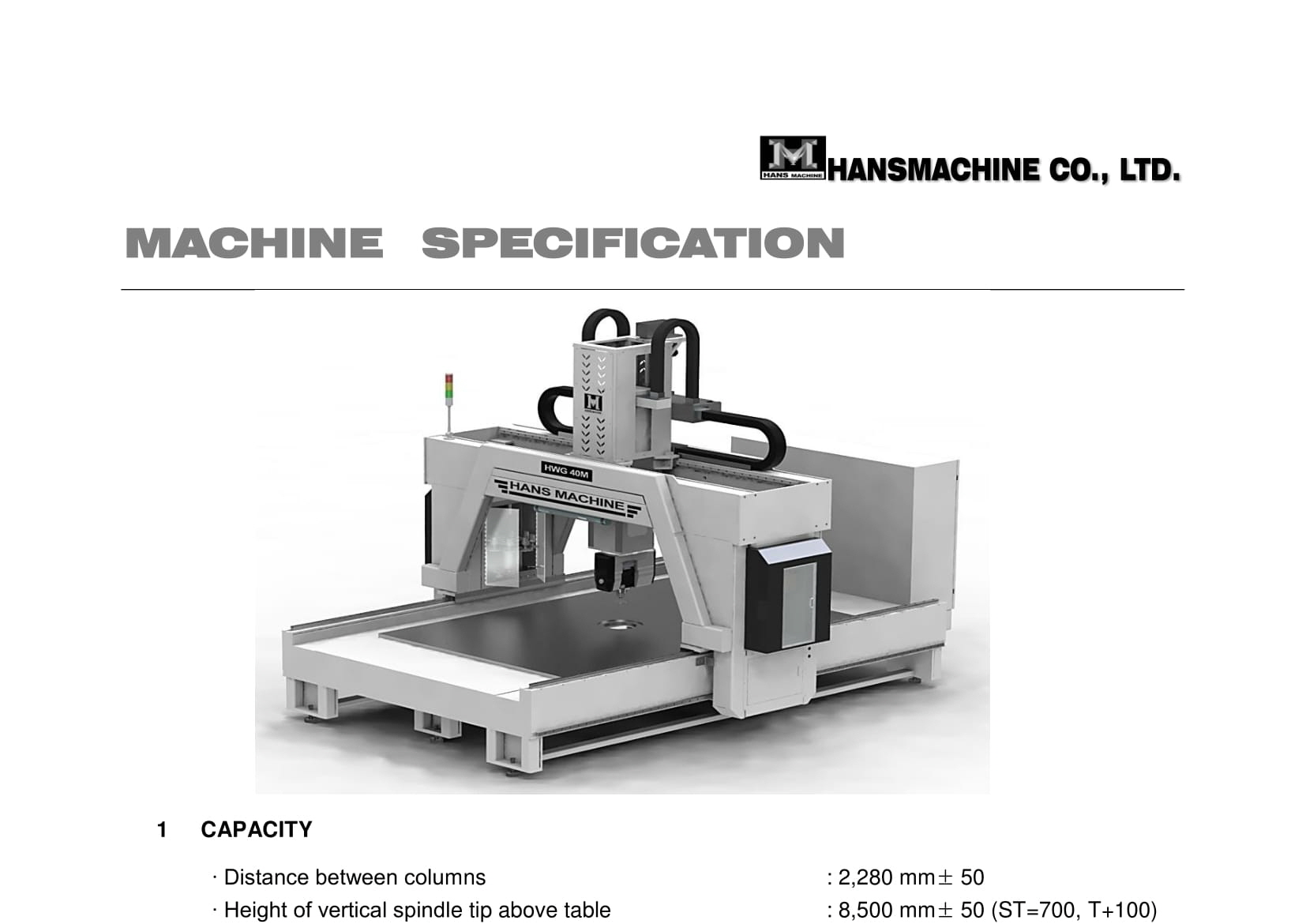 ∙ Feed rate of spindle head : 1~10,000 mm/min