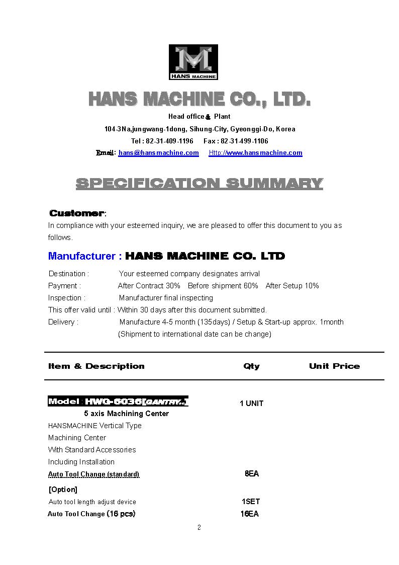 ∙ Height of vertical spindle tip above table : 0~1350 mm