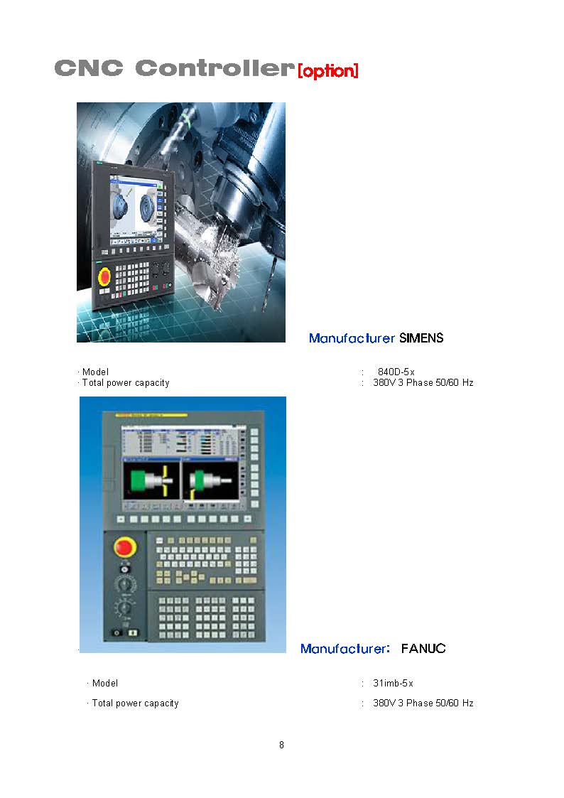∙ Feed rate of spindle head : 1~8,000 mm/min