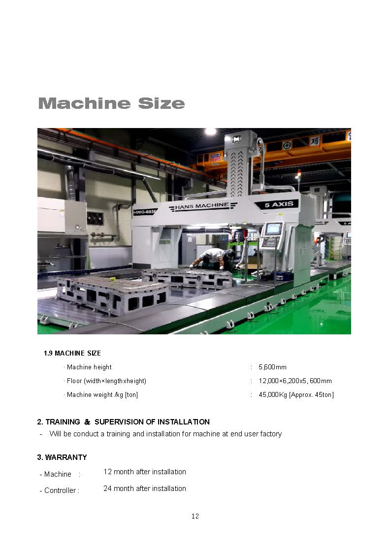 ∙ Rapid traverse of spindle head : 12,000 mm/min