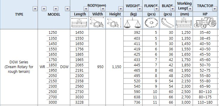 Korean rotavator rotary tiller rotary hoe 35 - 180 HP
