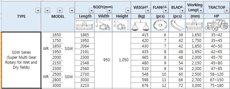 Korean rotavator, rotary tiller, roatry hoe, cultivator, 35-75HP