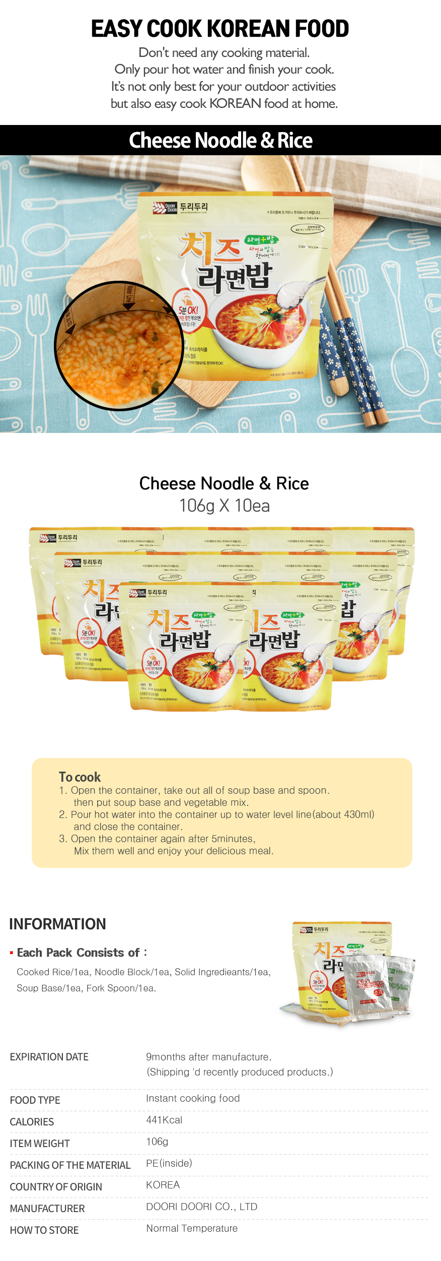 Just pour hot water and ready have a delicious Korean food.