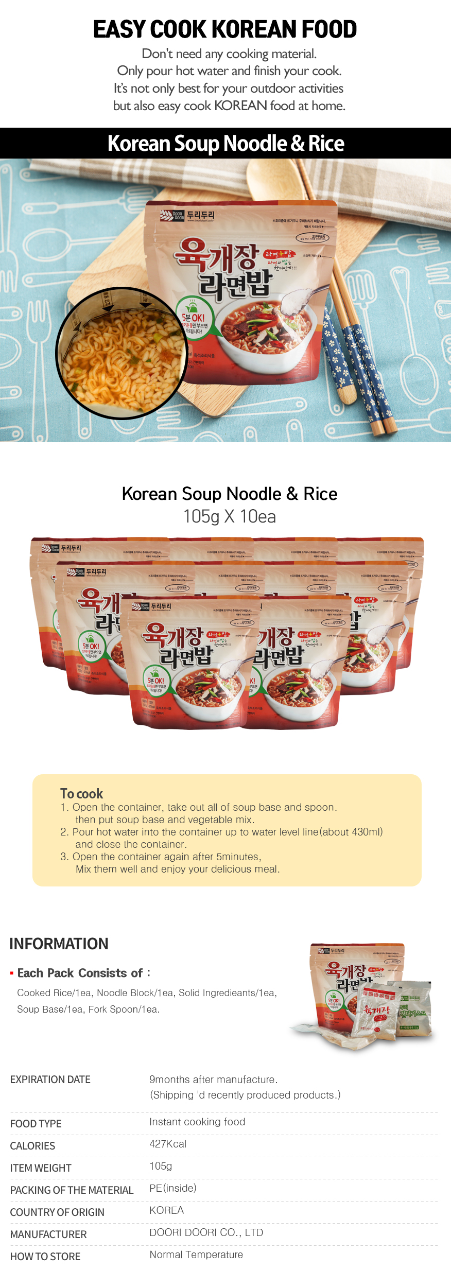 Just pour hot water and ready have a delicious Korean food.