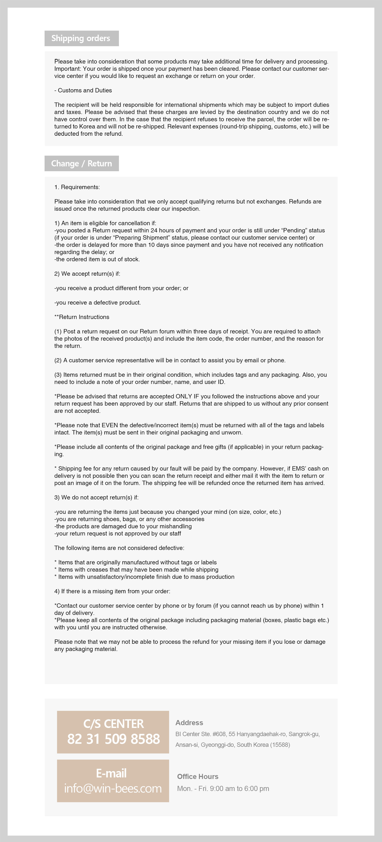 - Shipping