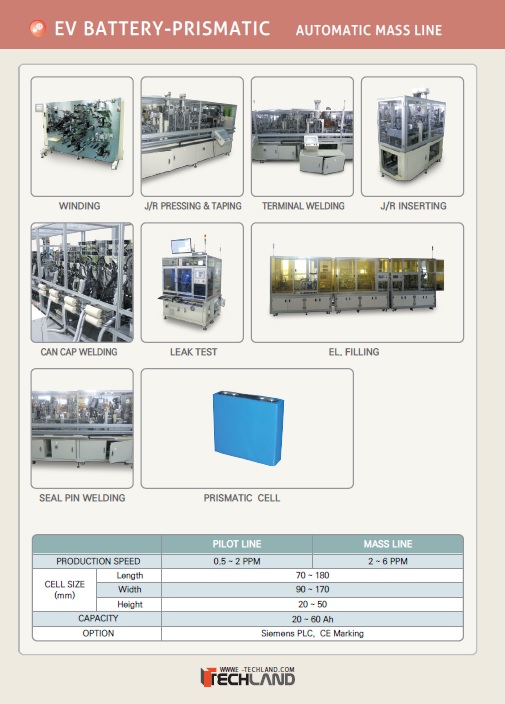 battery manufacturer, prismatic battery assembly, prismatic cell, prismatic battery machine, prismatic battery equipment, Techland, Techland, inc.