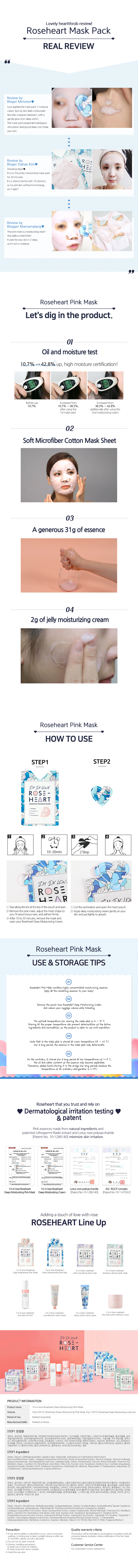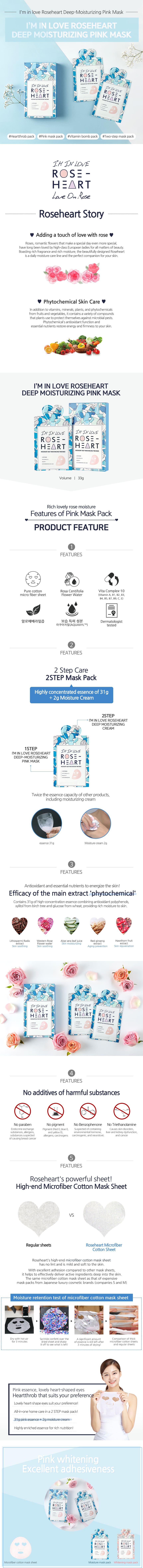 I’m in Love with Roseheart Deep Moisturizing Pink Mask - Volume 33g - 2STEP Mask Pack - Highly concentrated essence of 31g + 2g Moisture Cream - Twice the essence capacity of other products, including moisturizing cream.