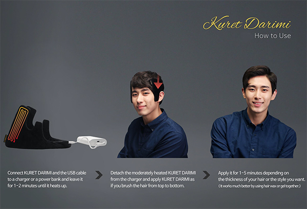 Detach the moderately heated KURET DARIMI from the charger and wear it on your head from top down as if you are brushing your hair from top to down wards