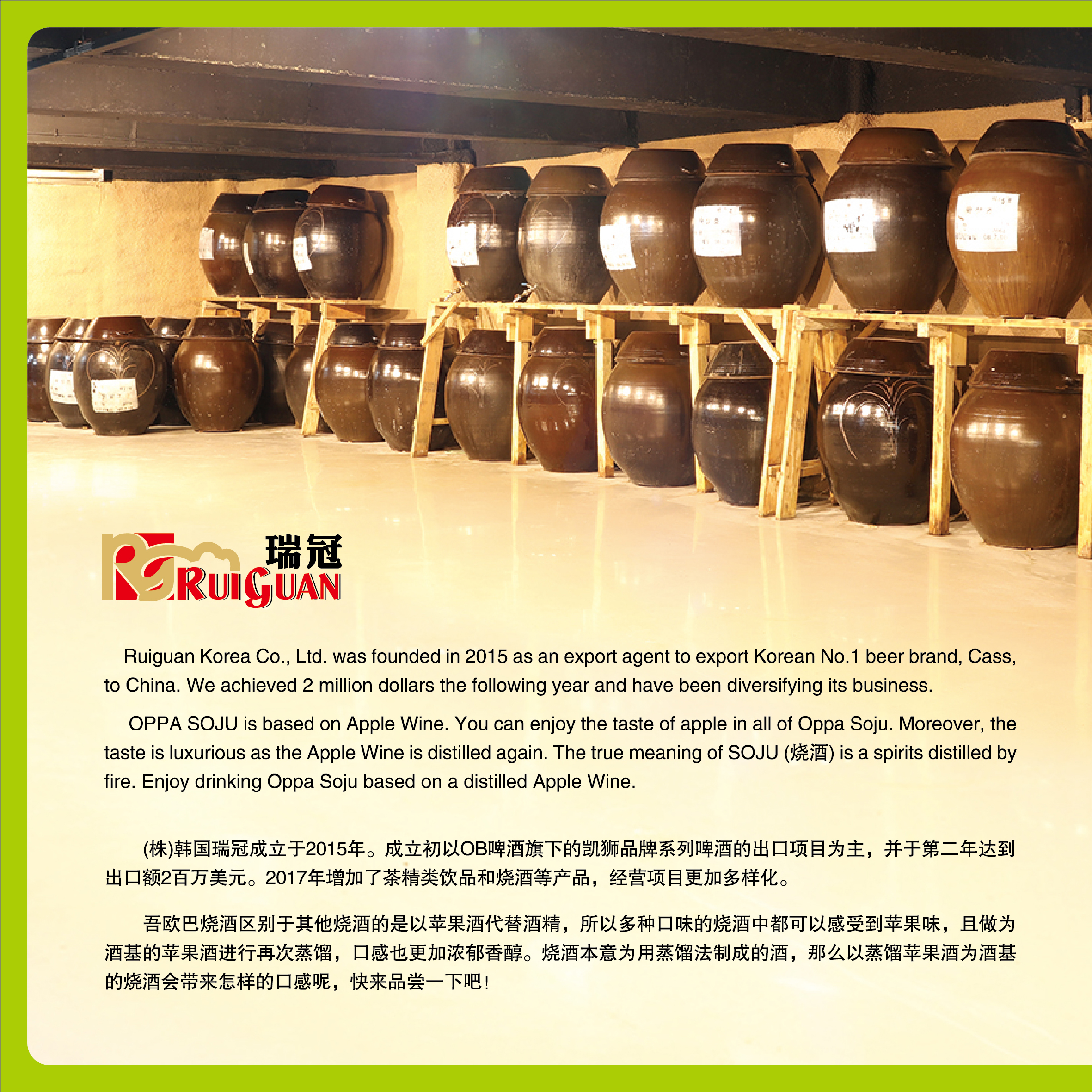 Located in Seoul, Korea, Ruiguan Korea Co., Ltd. was established in 2015 as a trading company in Korean Food. We are specialized in Alcohol Beverage and Liquid Tea.