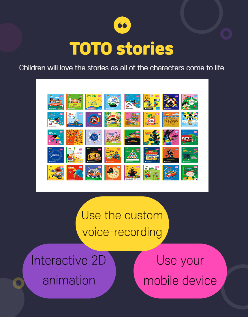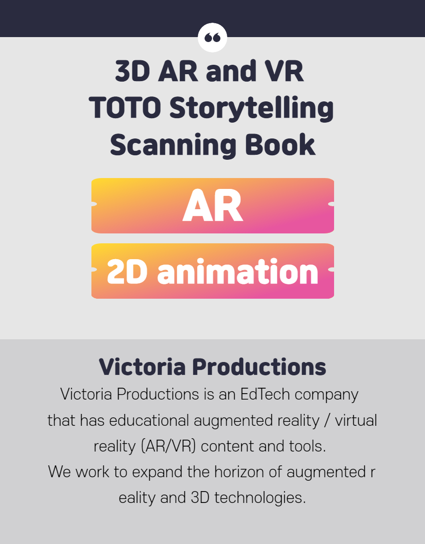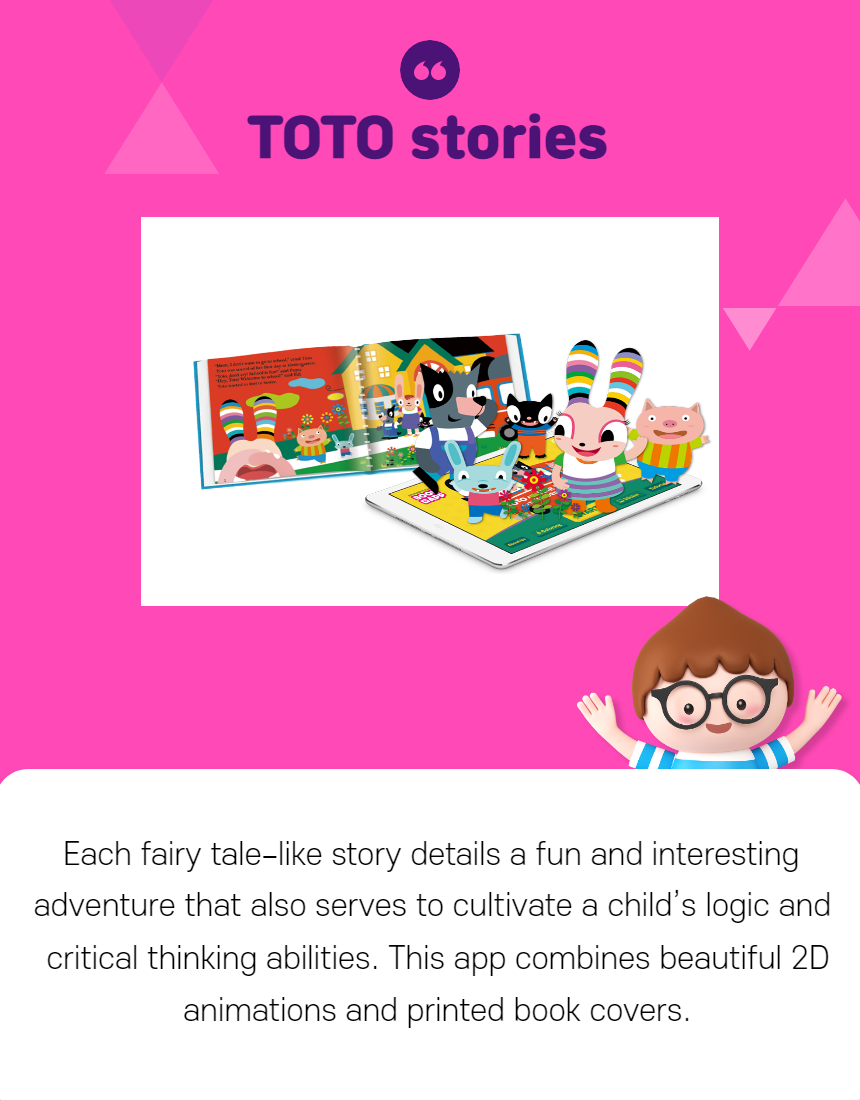 TOTO stories have been carefully crafted to be fun for both parents and children. Each fairy tale-like story details a fun and interesting adventure that also serves to cultivate a child’s logic and critical thinking abilities. This app combines beautiful 2D animations and printed book covers. Each page can be seen in interactive 2D animaton; just use your mobile device to scan each book cover of the Toto series books and watch the video as Toto characters immediately come to life on your screen.