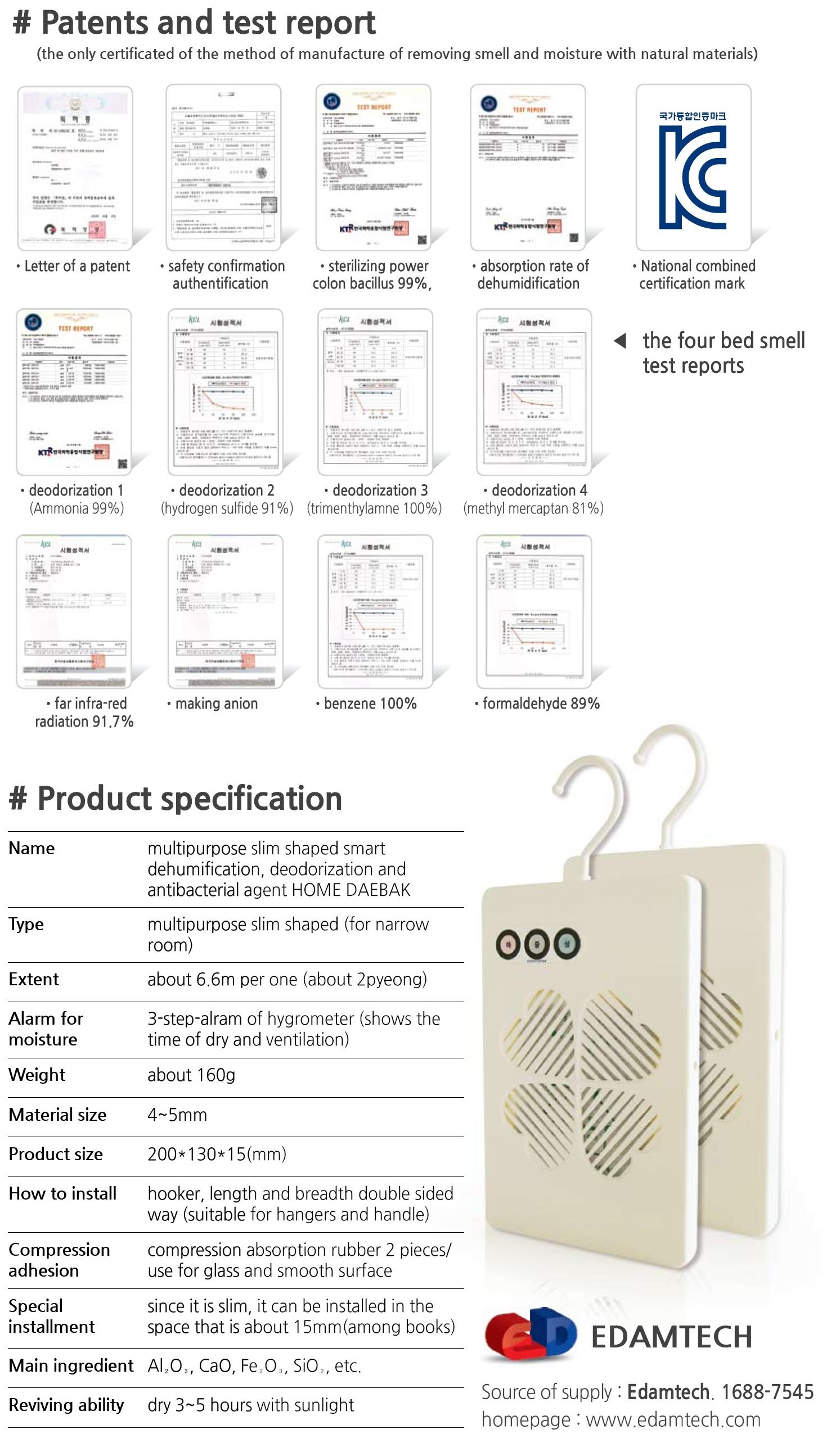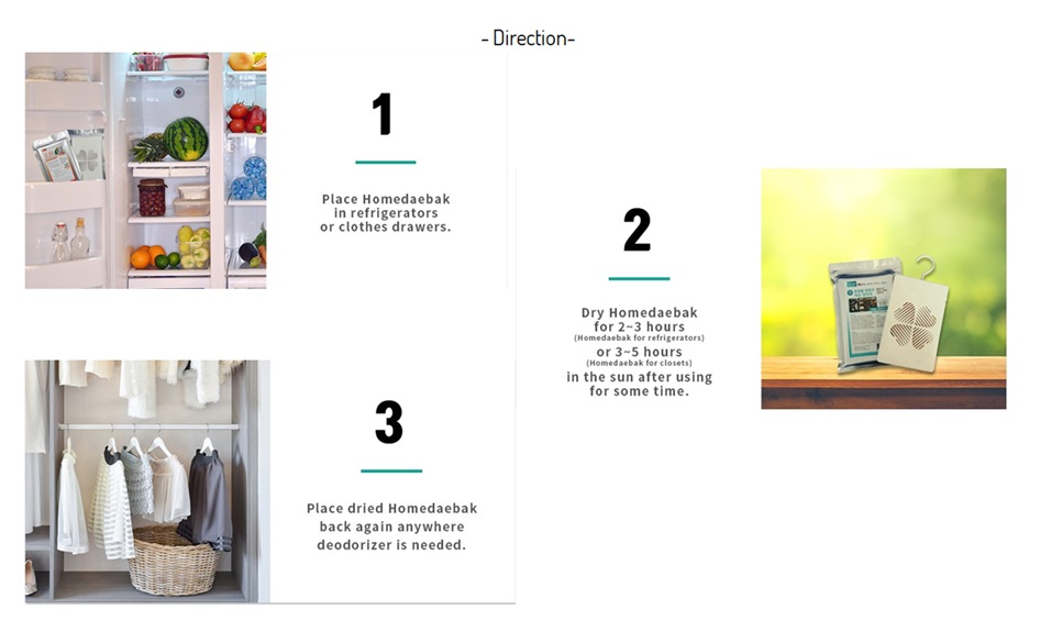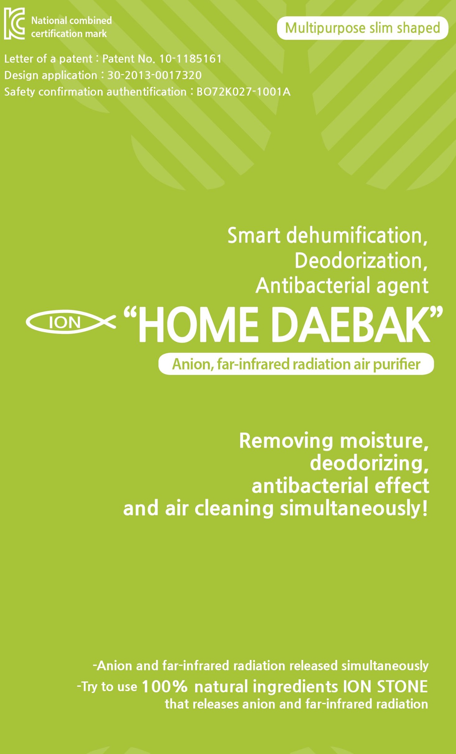 Removal of bad smell, humidity and germ by Negative ion and far-infrared ray.