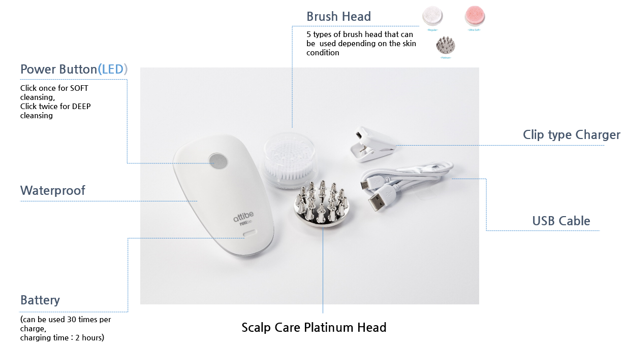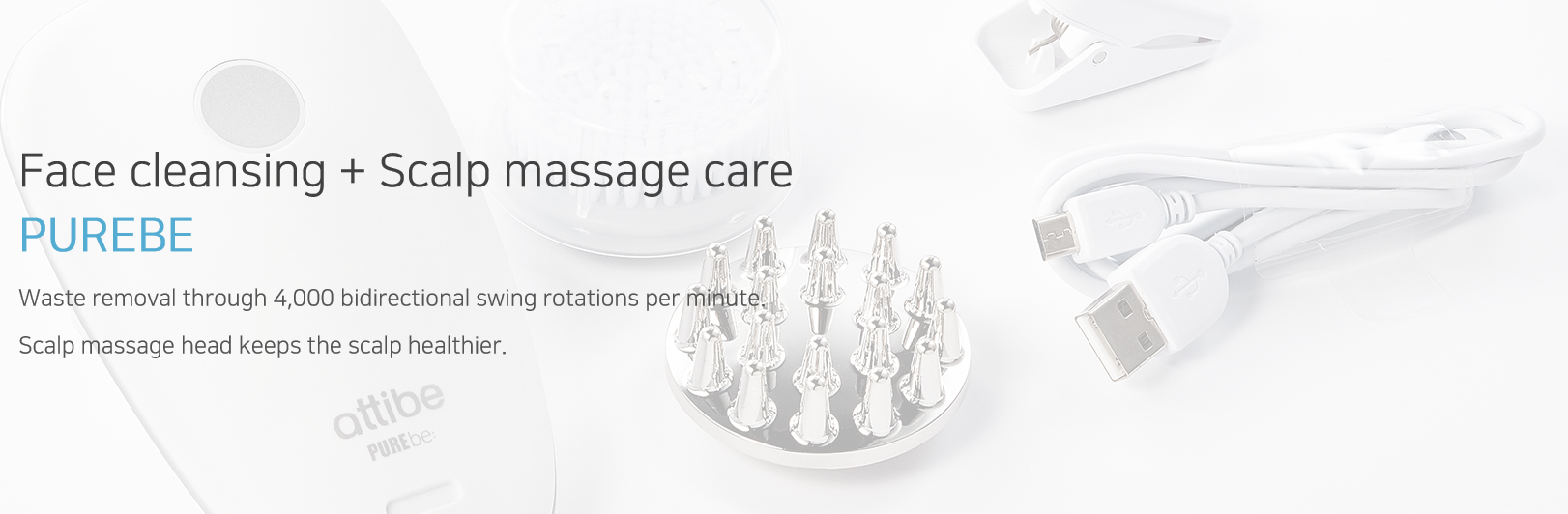 PUREBE is a cleansing device not only for facial cleansing, but also for scalp massage.