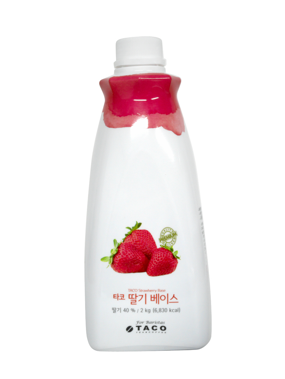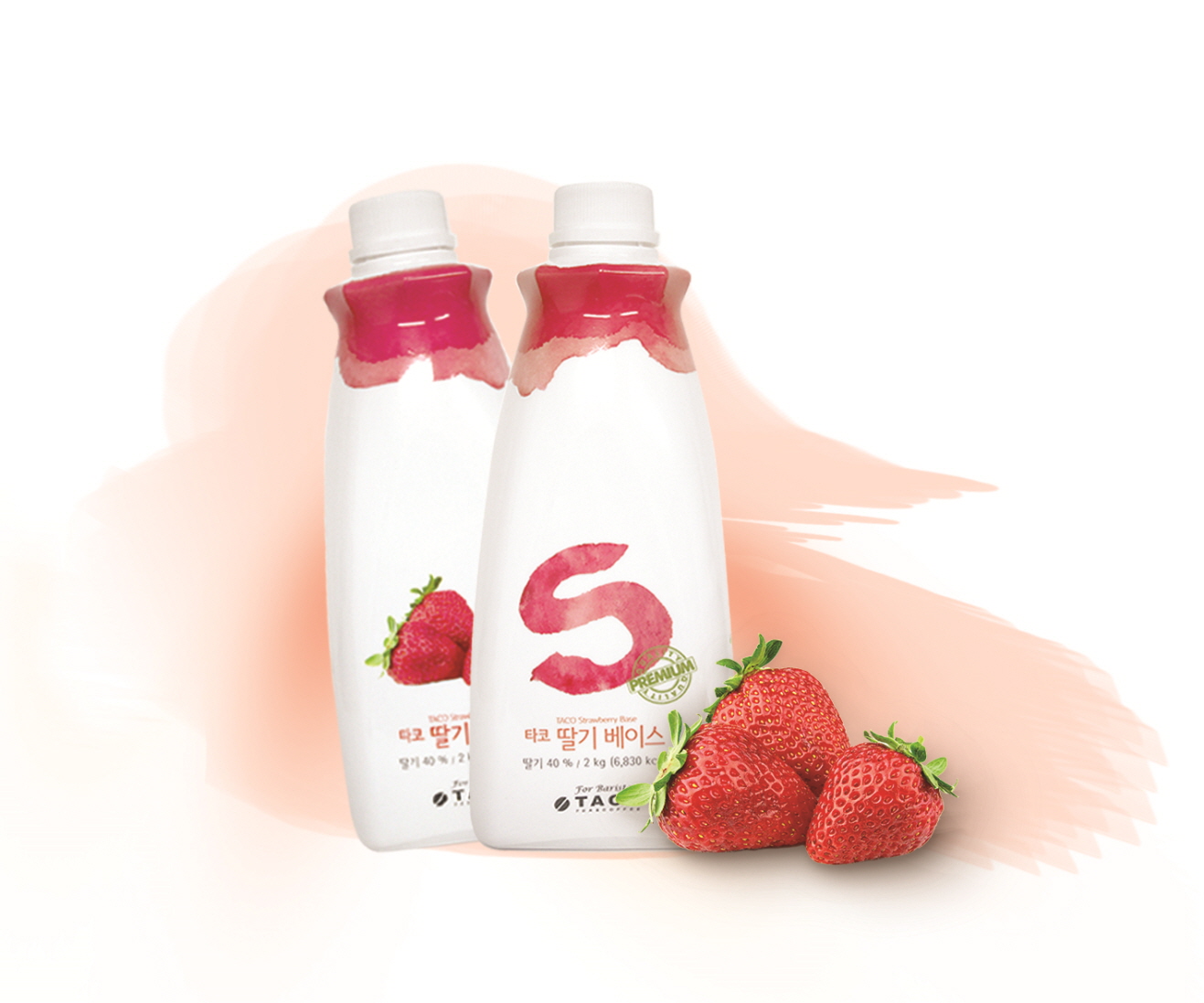 Strawberry, queen of vitamin C! High quality beverage base containing more than 40% of flesh made by blending domestic raw strawberry, TACO strawberry base with vitamin C and natural and amusing popping sound of the strawberry seeds contained in it.