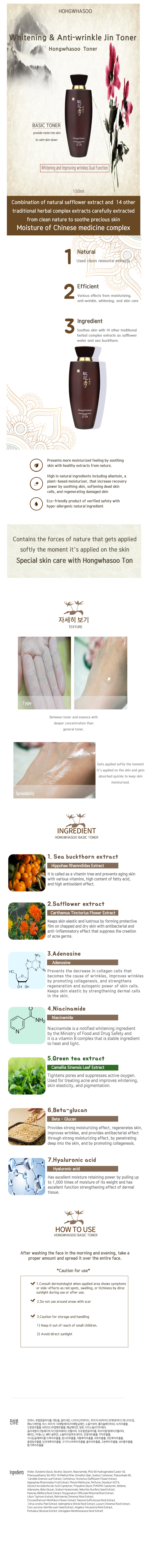 The safflower extracts supply energy to make fresh and bight skin, and the moisturizing effects of sea buckthorn maintains the sensitive skin healthy and moist.
