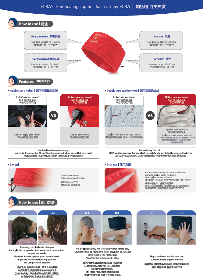 ELRA KOREA self hair heating cap for hair treatment, hair dying, hair perm