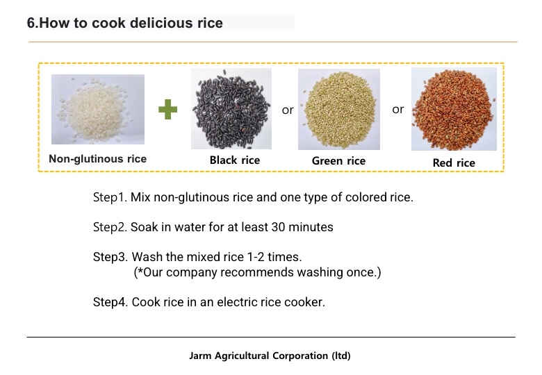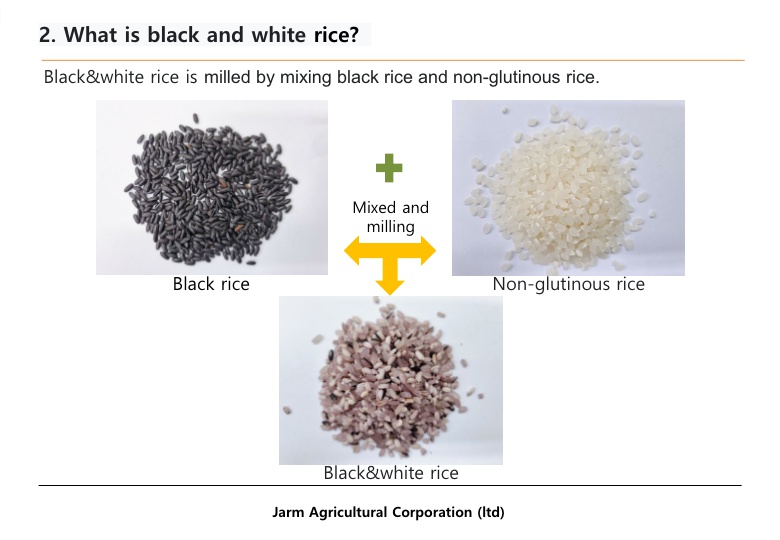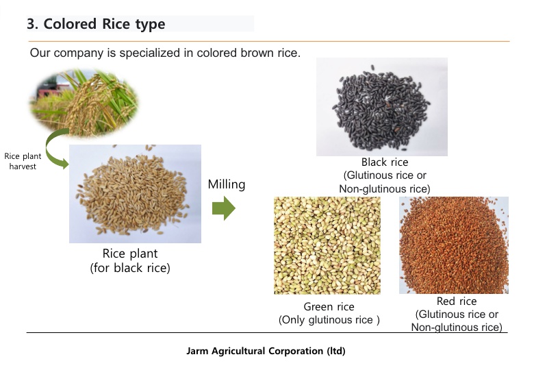 Who are we? Well, Jarm Agricultural Corporation (Ltd) is a company specializing in black rice and colored brown rice in South Korea.