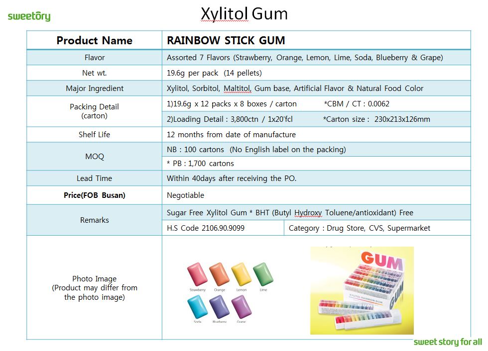 Xylitol using color coated sugar free gum, 7 different color and flavor in one package.