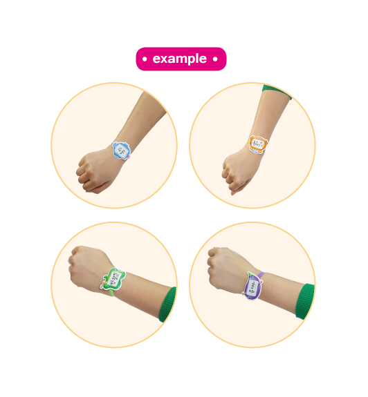 wristband name tag (crab, fish, eggplant, bell pepper)