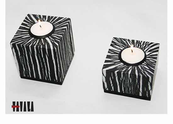 It is a candle holder made of charcoal natural material inspired by natural stripe pattern.