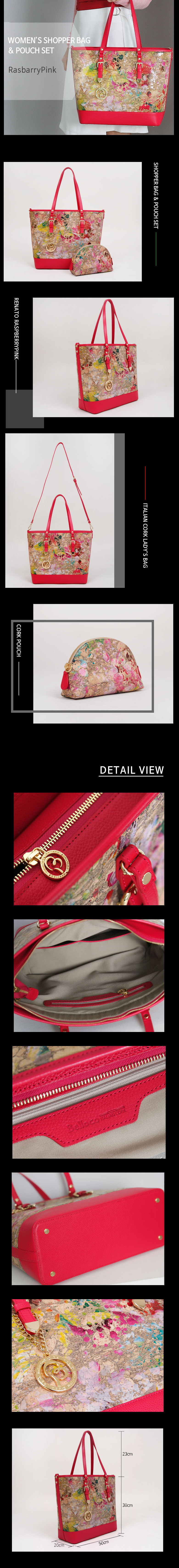Natural Cork Shopper bag and Pouch set raspberry pink