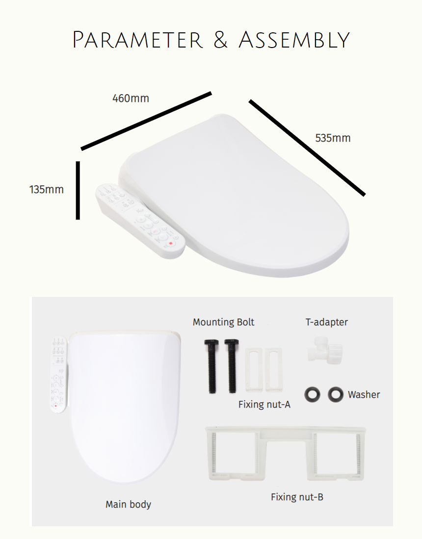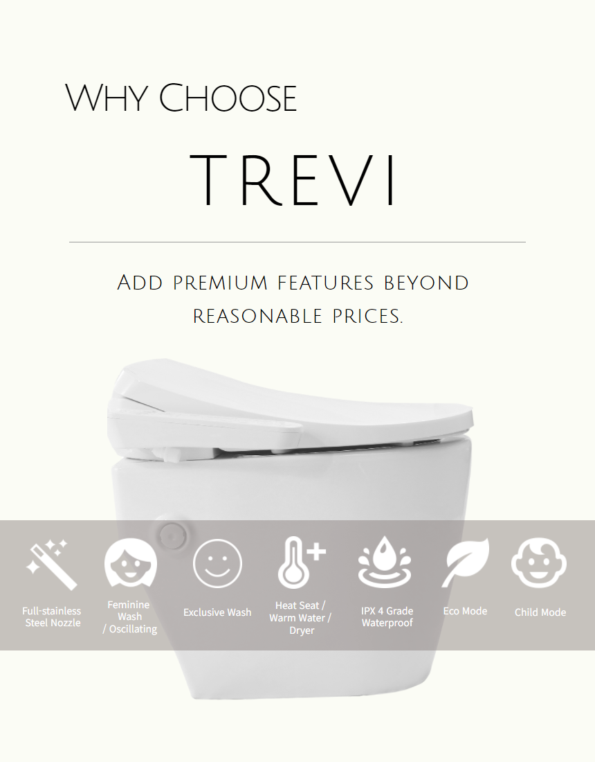 The TREVI Bidet Has Automatic Flushing Function After Toilet Use Stainless Nozzle, LED Night Light, Front Wash, Rear Wash, Dry, Deodorant, Cleanse, Massage