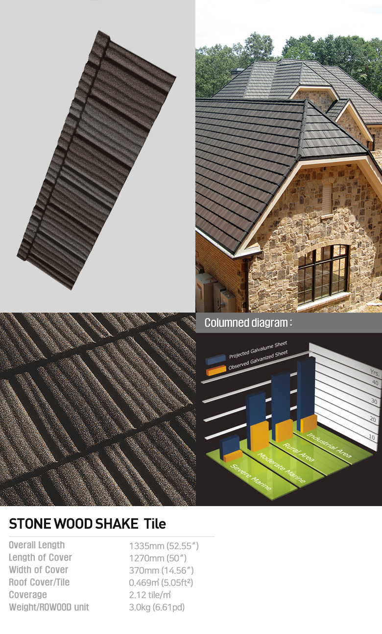 surface give beauty and additional weather protection to your roof. STONE WOOD SHAKE is a product