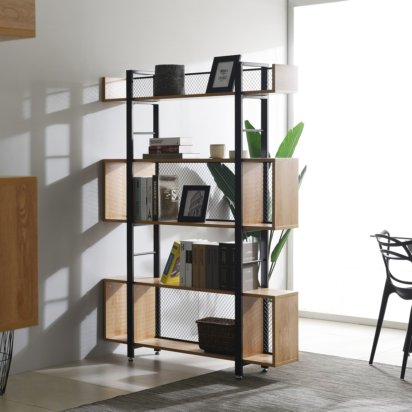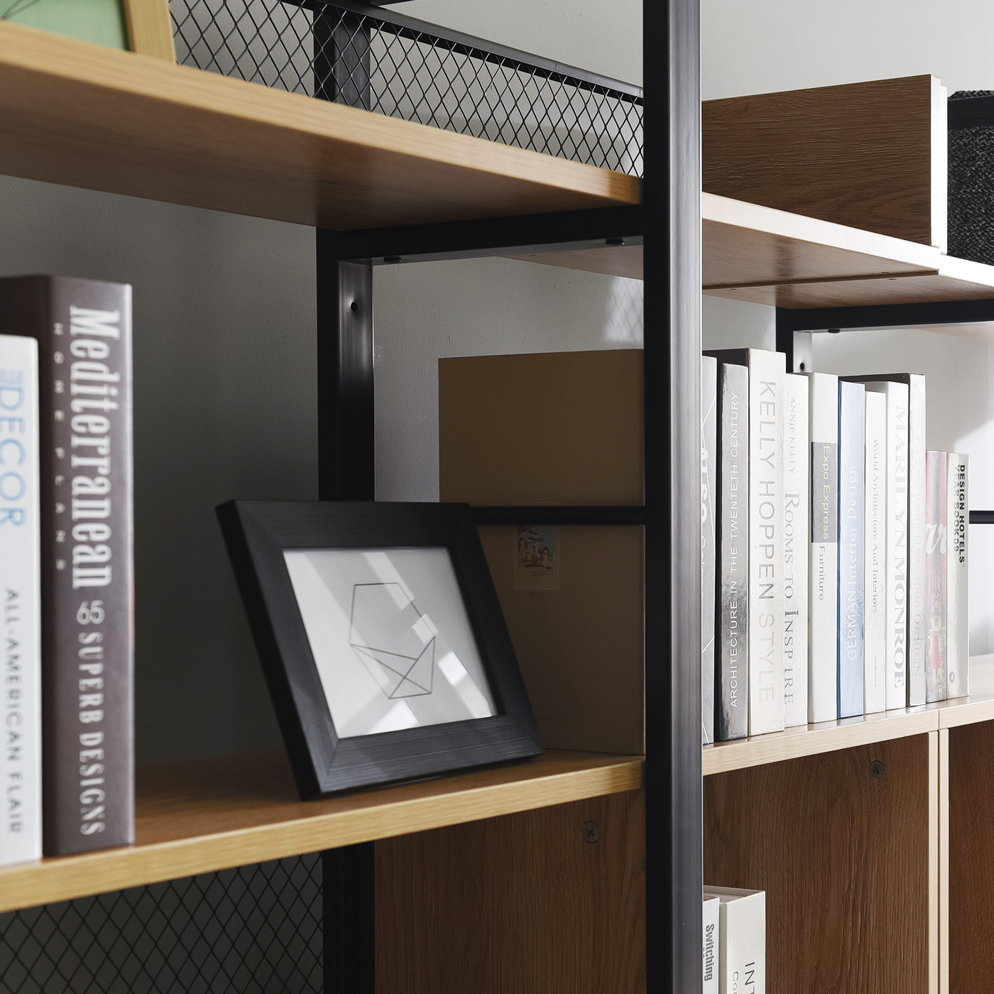 Modern Design Home Office Furniture Metal Wood Display Square Bookcase Bookshelf