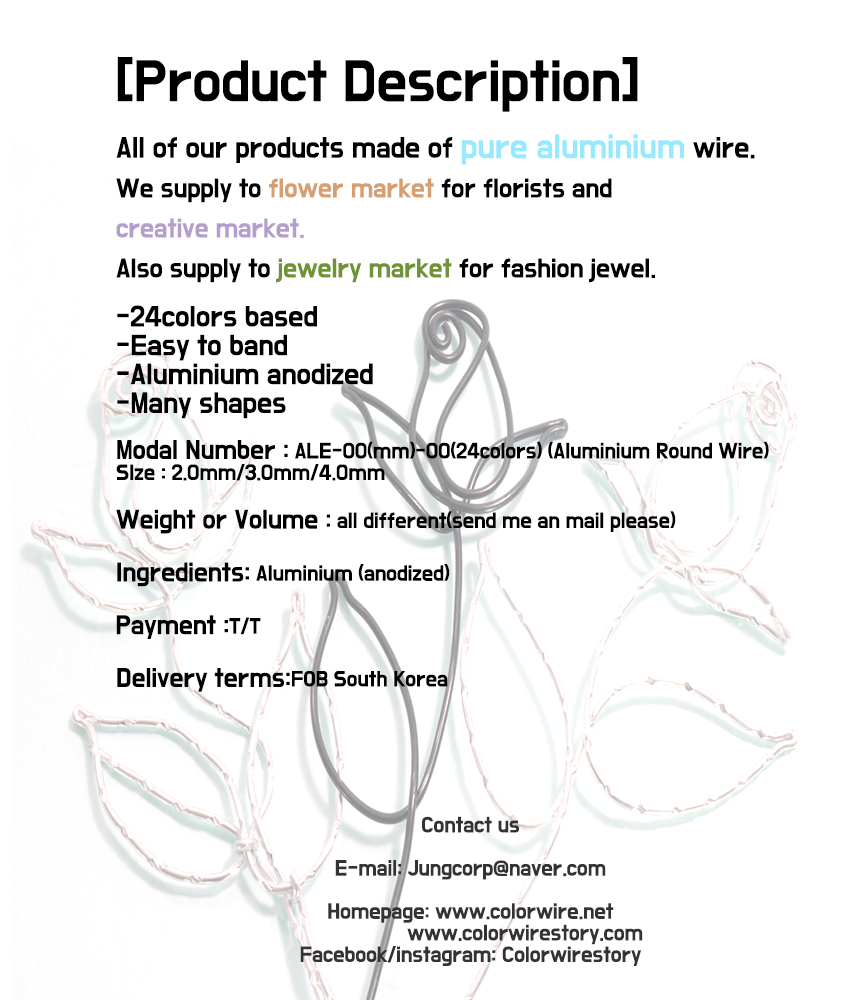 Colorwirestory,aluminium Wire,Craft Wire, Hobby Wire, Easy to band, 24colors, many shapes, anodized wire, beautiful,unique,awsome,
