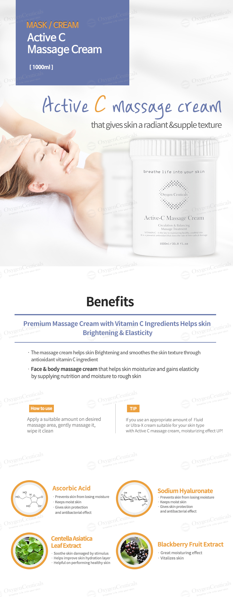 premium massage cream, brightening skin, circulation and balancing massage treatment, Vitamin C contains, make elastic skin, soothe skin, anti oxidant effects
