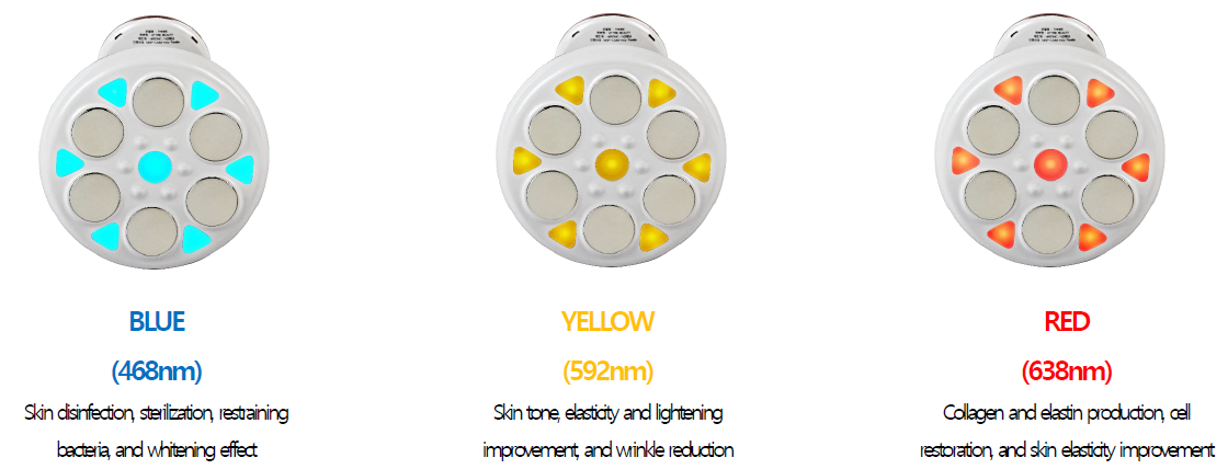 Simultaneous Body & Skin Care by irradition of 3 Color LED light which has a skin care effect