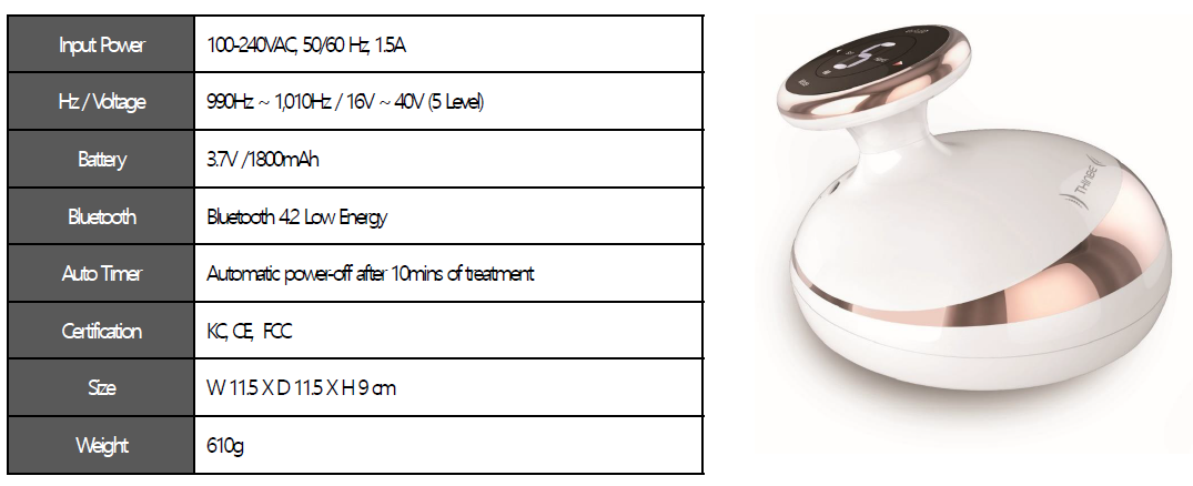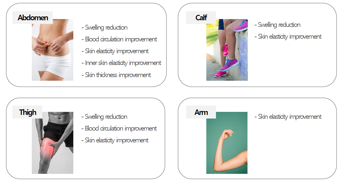 It allows three-dimensional stimulation targeting muscle/fat and repeats contraction and relaxation of muscles 120 times in 10 min with mid frequency of 1000 Hz and above.