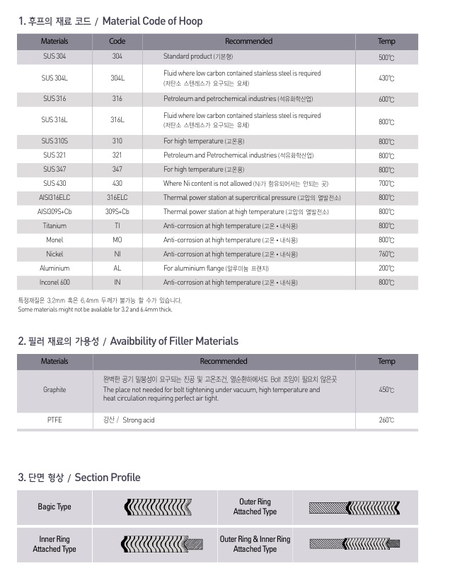 The most ideal type having flexibility and recovery which are essential for high temperature and high pressure among semi-metal gasket products.