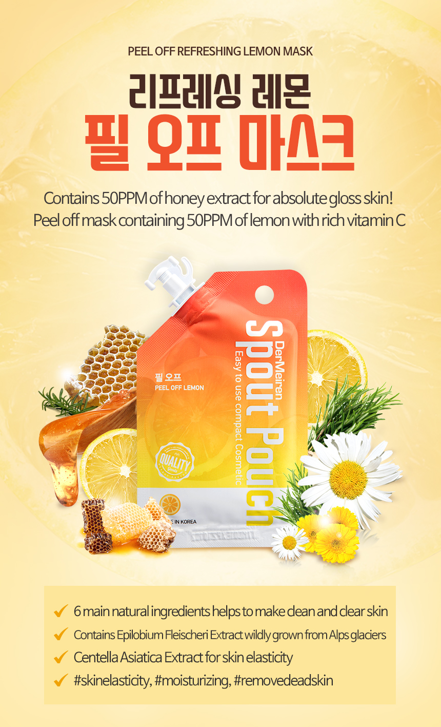 DerMeiren, Spout Pouch Cosmetics, Peel off Refreshing Lemon and Honey Mask