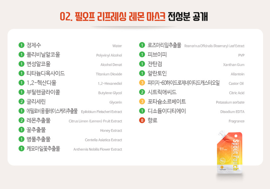 -Ingredients : Water, Polyvinyl Alcohol, Alcohol Denat,Titanium Dioxide,1,2-Hexanediol, Butylene Glycol, Glycerin, Epilobium Fleischeri Extract, Citrus Limon (Lemon) Fruit Extract, Honey Extract, Centella Asiatica Extract, Anthemis Nobilis Flower Extract, Rosmarinus Officinalis (Rosemary) Leaf Extract, PVP, Xanthan Gum,Allantoin,PEG-60 Hydrogenated Castor Oil, Citric Acid, Potassium sorbate, Disodium EDTA, Fragrance