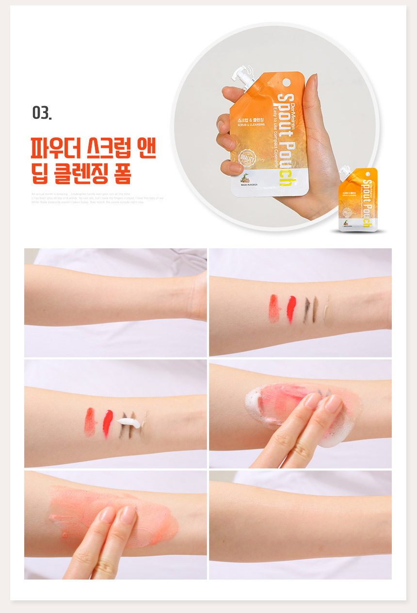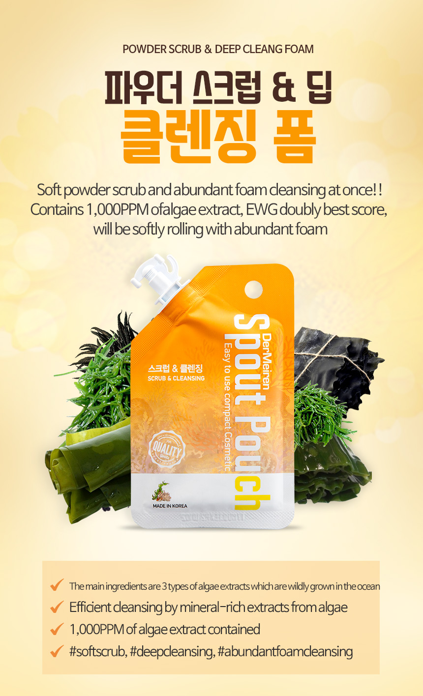 DerMeiren, Spout Pouch Cosmetics, Scrub Powder and Deep Cleansing Foam