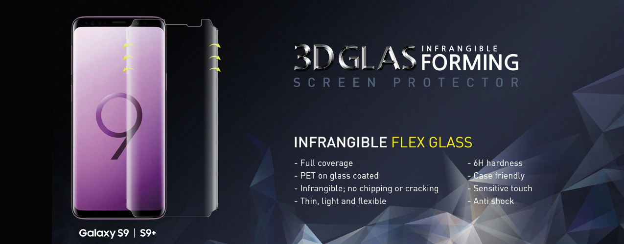 It is a high hardness full coverage screen protector for curved devices with the material of optical PET with glass coating which is produced by the mold technology. Recently, the smartphone manufacturers such as Samsung and Apple, they release their new devices with a curved LCD screen for the design trend. The trend of the screen protector is changing to the high hardness screen protector from the general tempered glass screen protector.