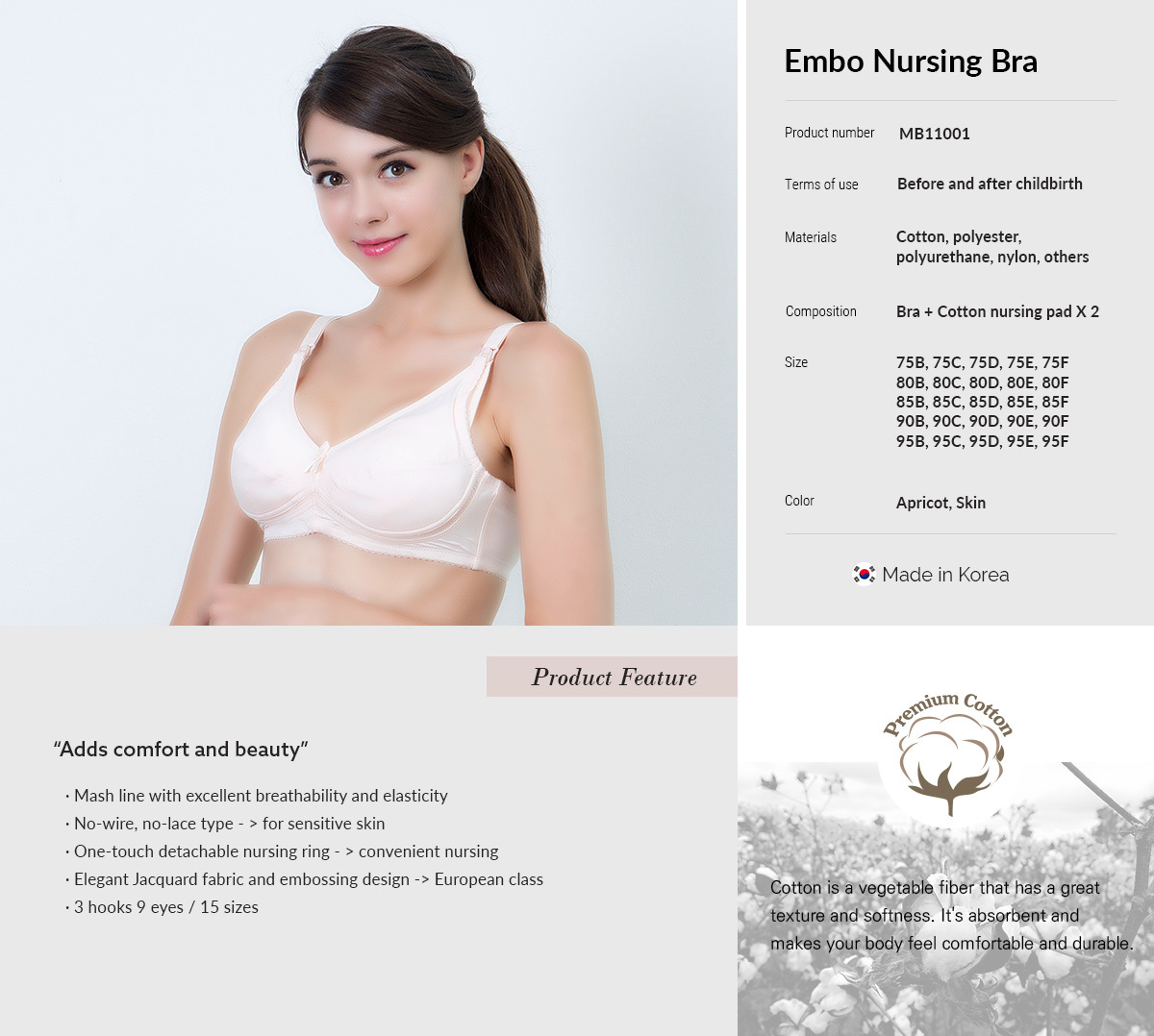 Full-cup style to protect the bust comfortably. Maternity nusing bra.