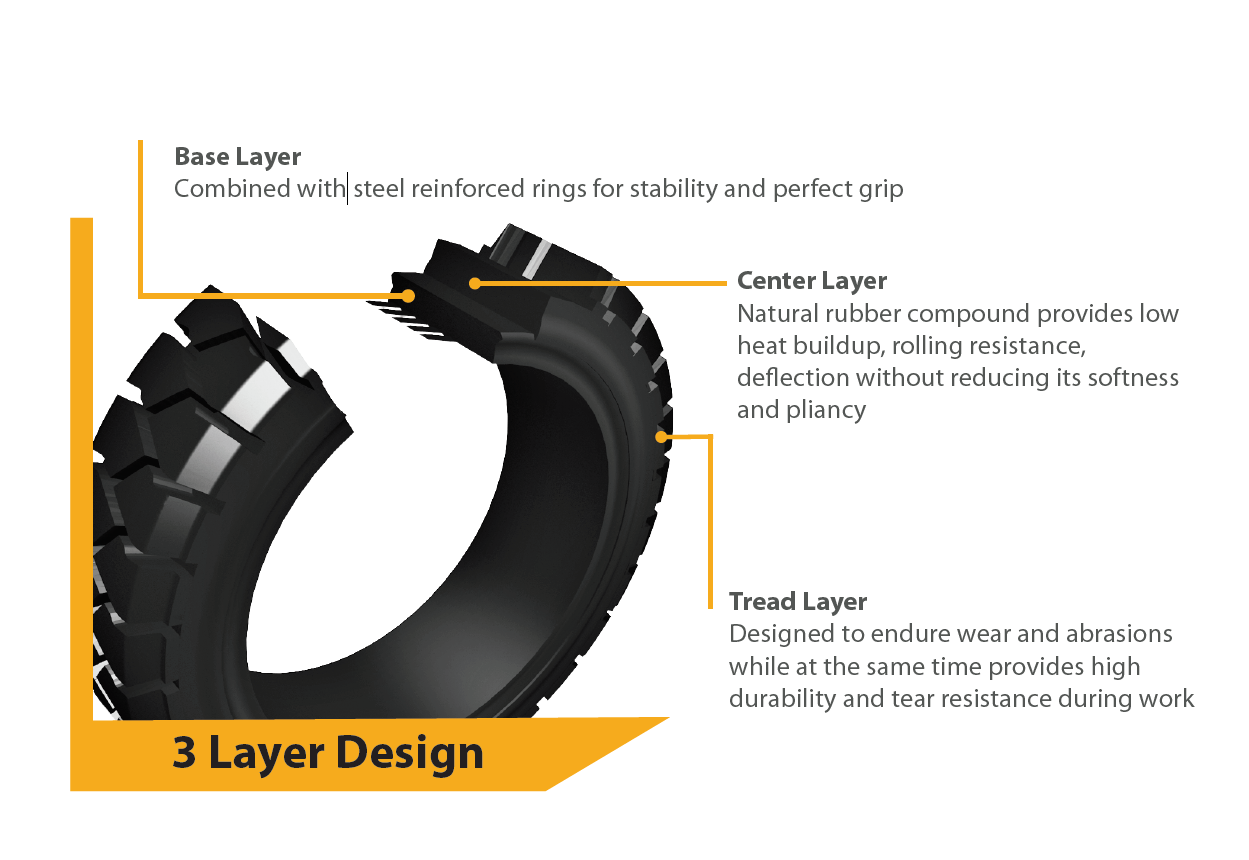 a. Our Solid tire uses the strongest cord-like system to construct the framework.