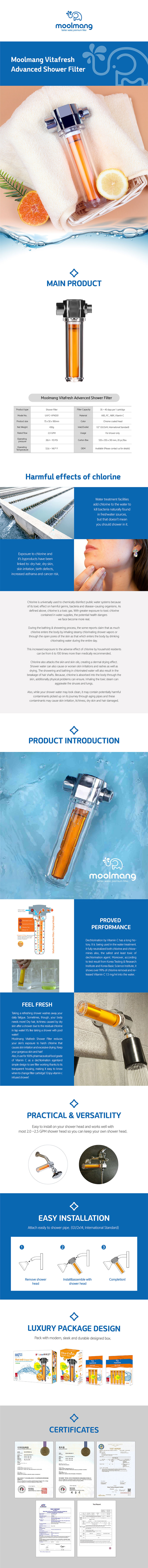 vitamin shower, vitamin filter, chlorine free, moolmang, vitafresh, vitamin c inline shower filter, hotel shower filter, shower filter