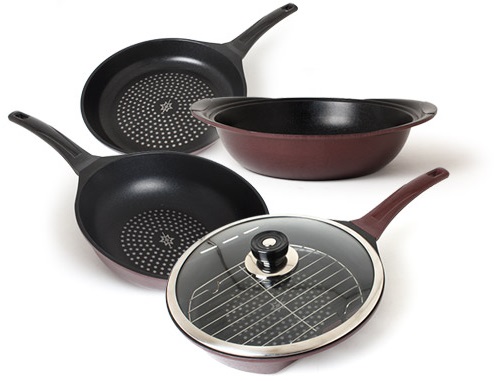 Diamond heat prevention frying pan set comes with ceramic,marble, diamond coating. composition of pan, wok, pot, grill pan. No harmful ingredients found