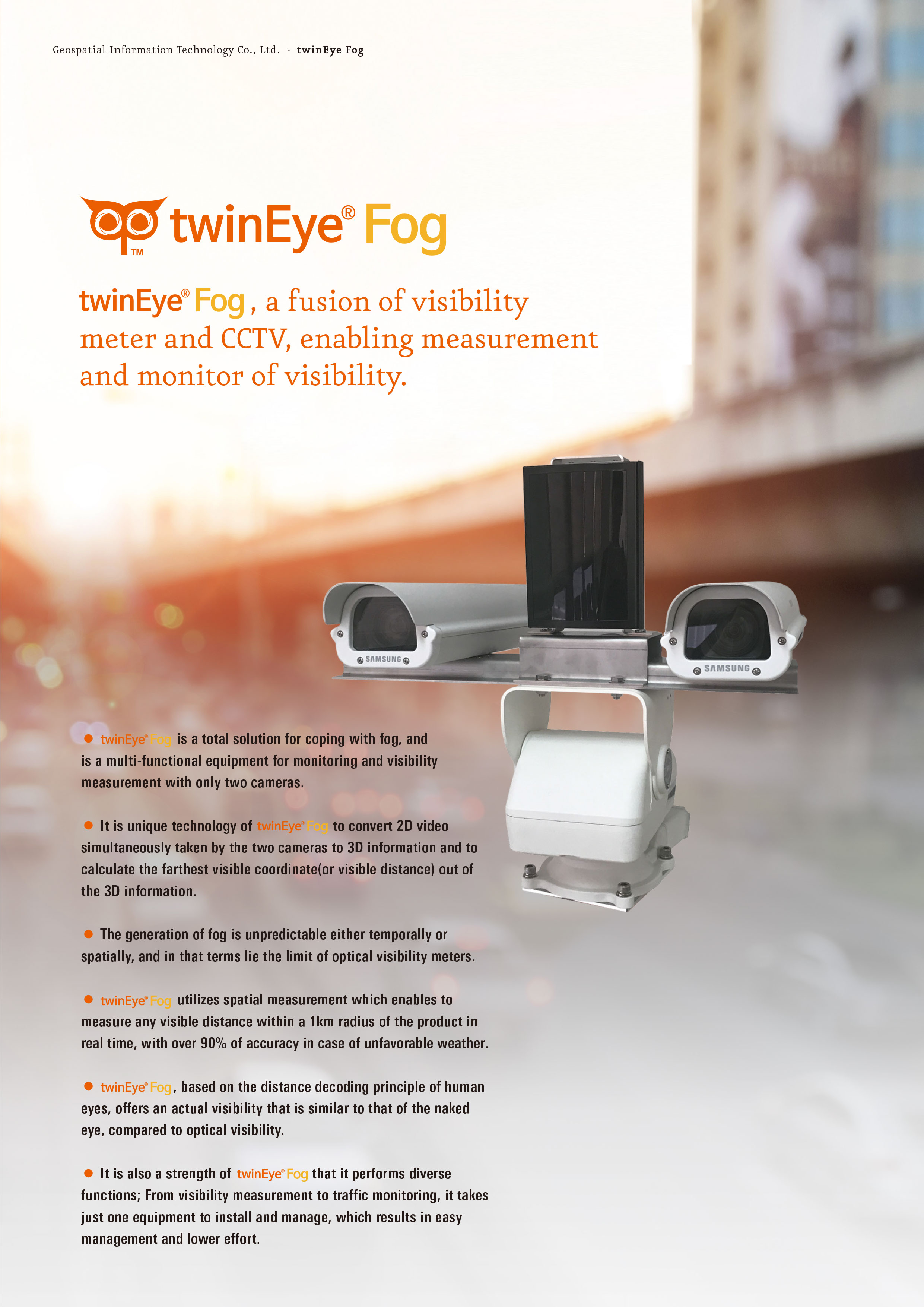 twinEye-Fog is a total solution for coping with fog, and is a multi-functional