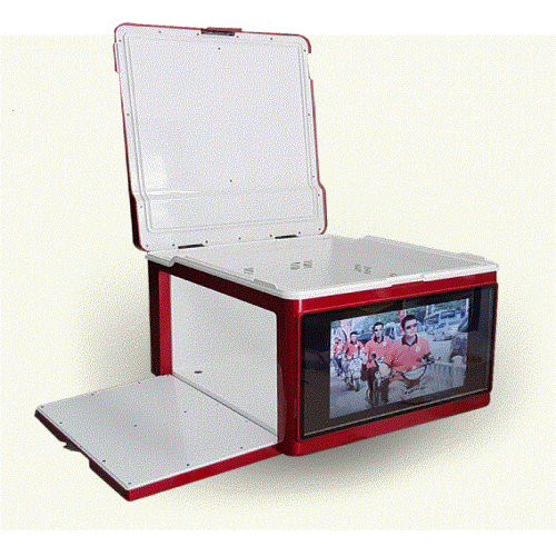 Smart Delivery Degital Box is an advertising system that provides a multimedia advertisement to motorcycle food delivery Degital box. Three-sided LCD screen displays multimedia advertisements with images, videos, and audios