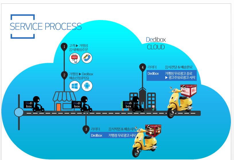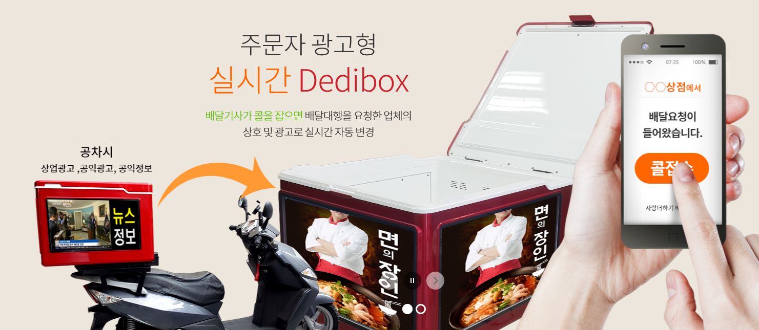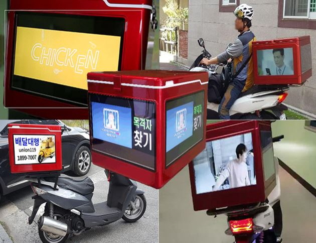 When a store or company requests for express delivery service or food delivery service, and once the order is placed, the name of the store or company that has made the order appears on the delivery Degital Box mounted to a delivery motorcycle. you can advertise for the stores or companies who have placed the order, and not for delivery service agency. In particular, you can selectively display special advertisement dynamically depending on the specific region or route.