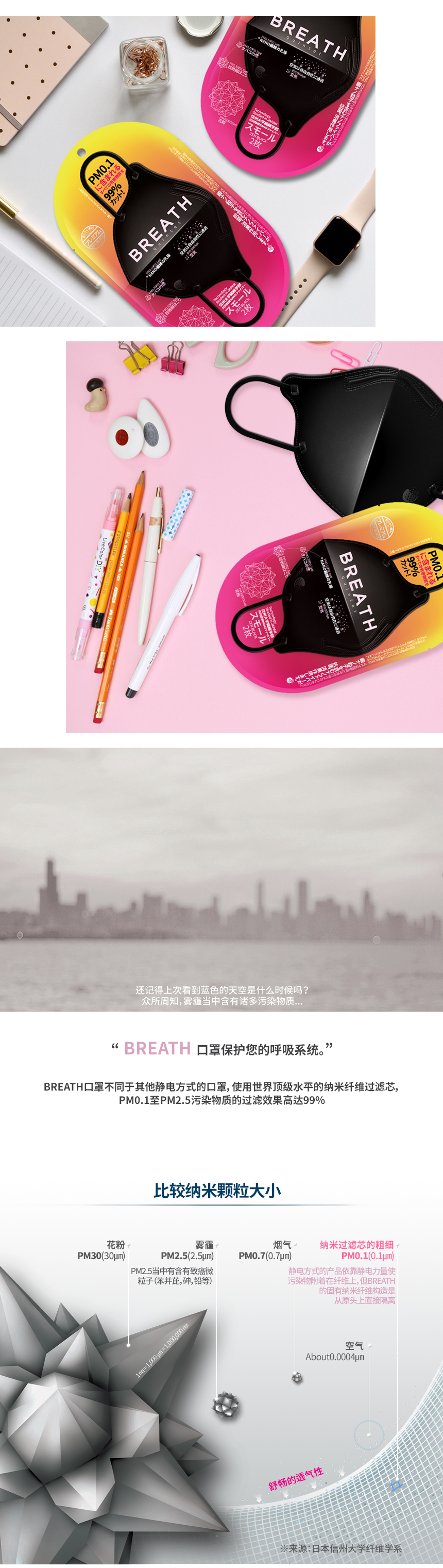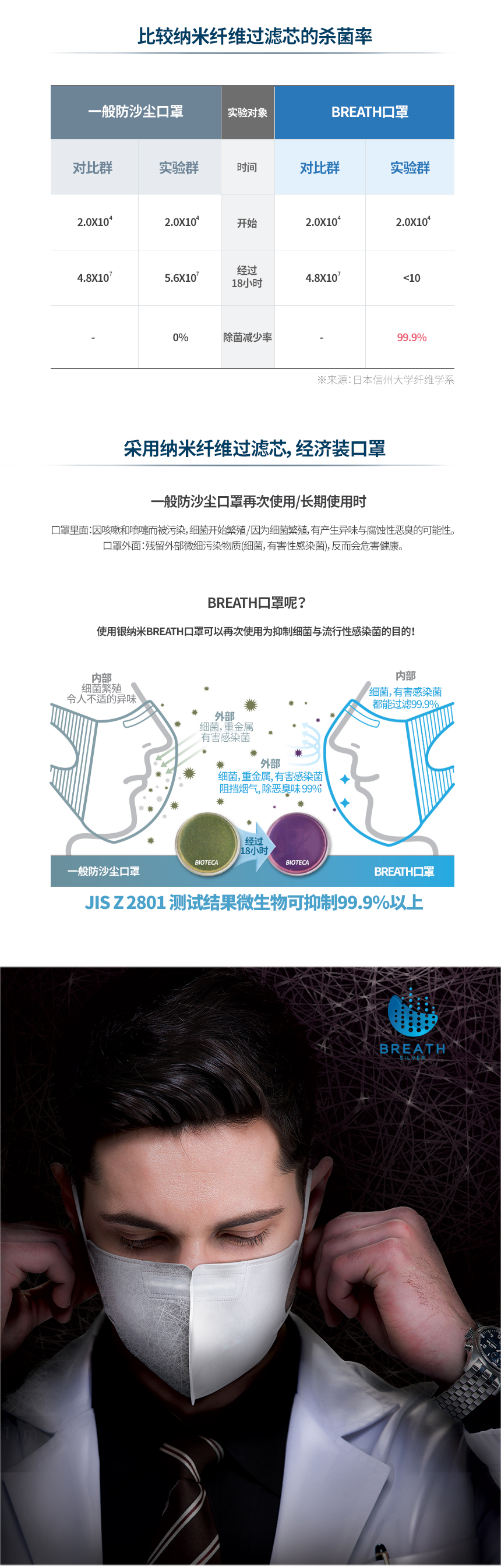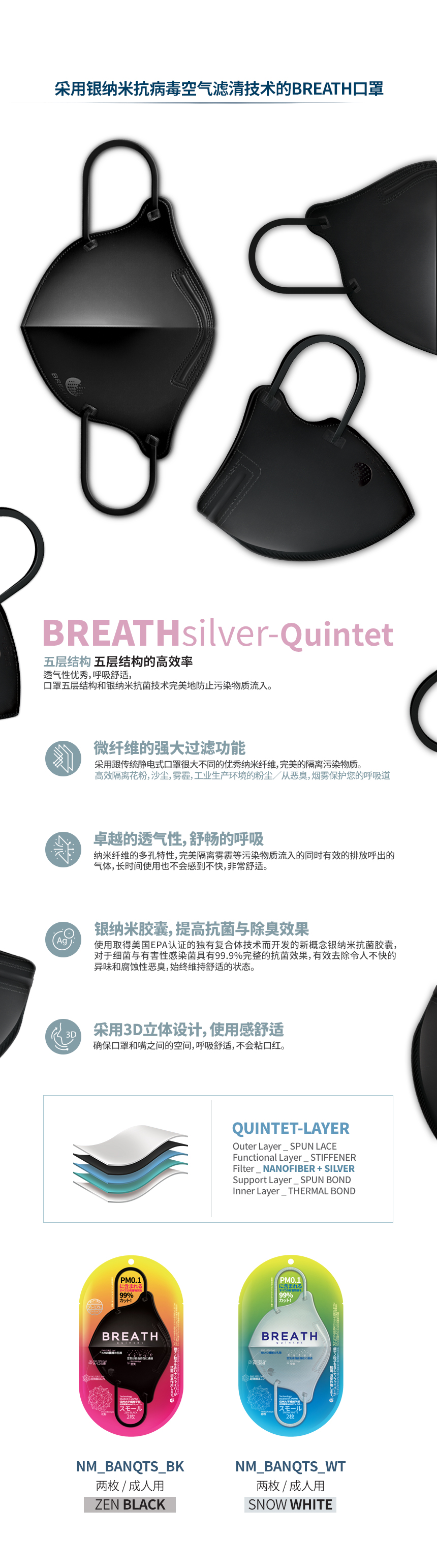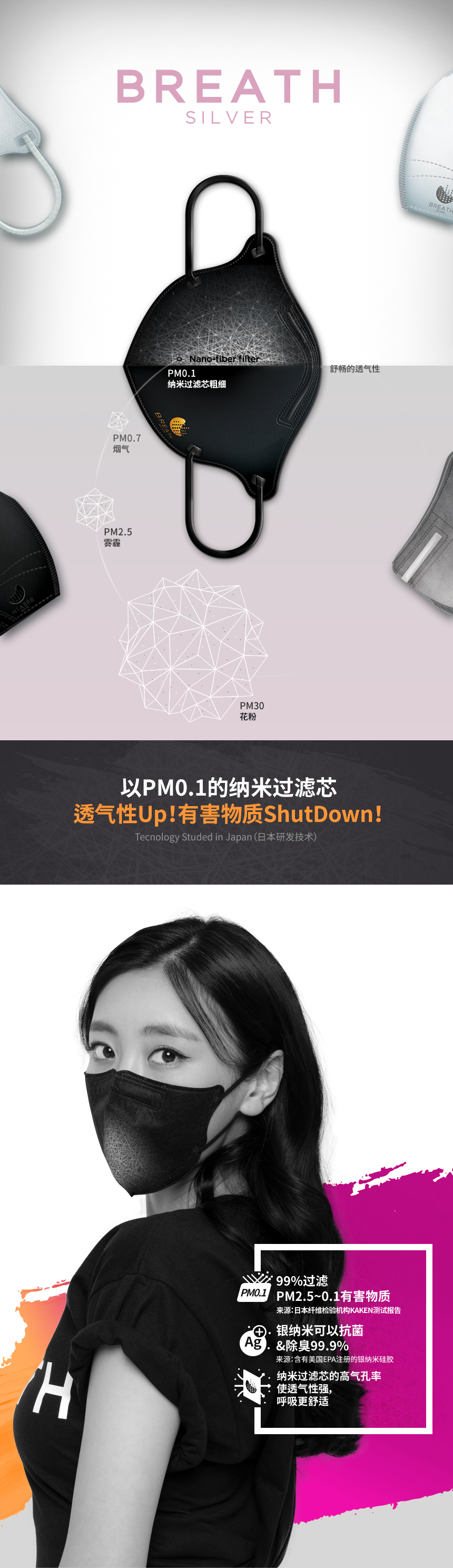 Prevents 99% of micro dust! Strong filtering ability, Breath silver Mask , Excellent breathability, 99.9% Maxmized antimicrobial effect,3D-designed comfortable wearing