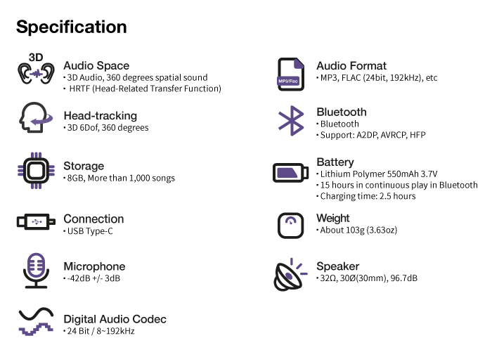 - 3D Audio Walking Mode: 3D audio converts the sound as if it is moving from the front to