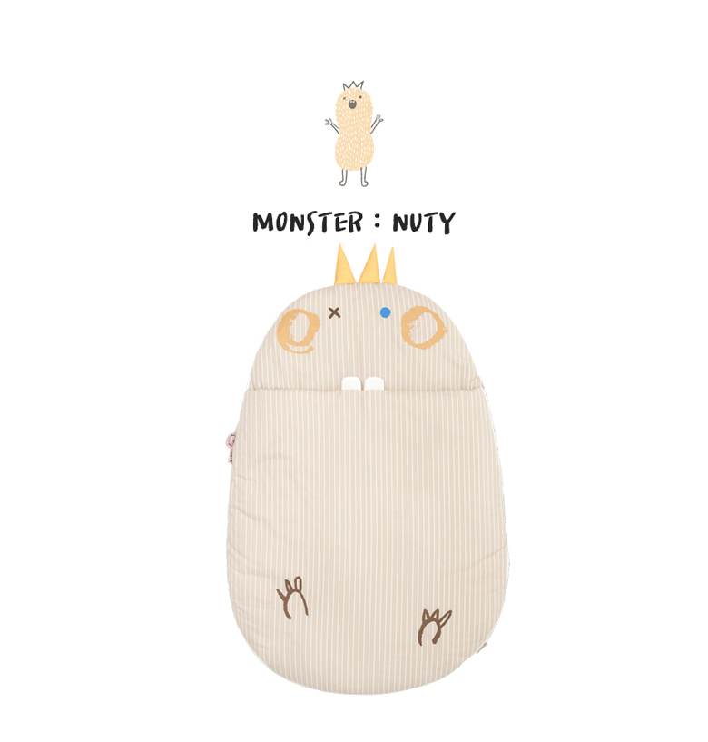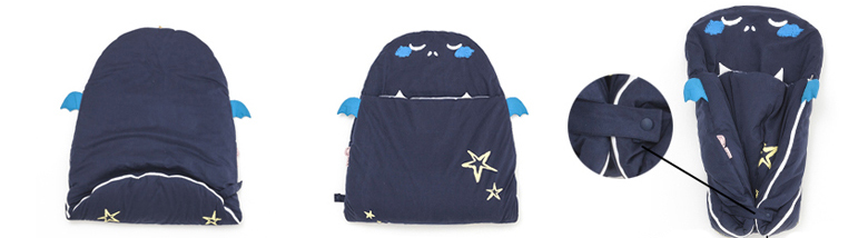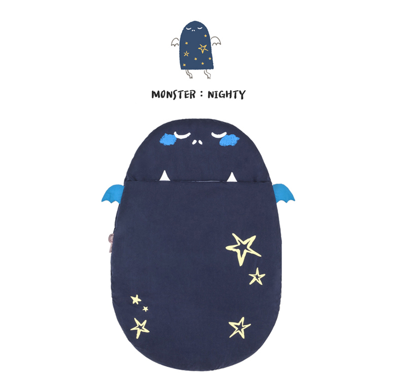 Nighty is colored with navy and is the monster well suited with a baby sleeping bag