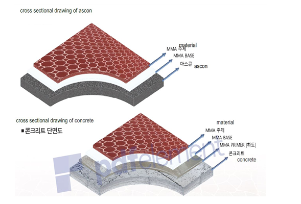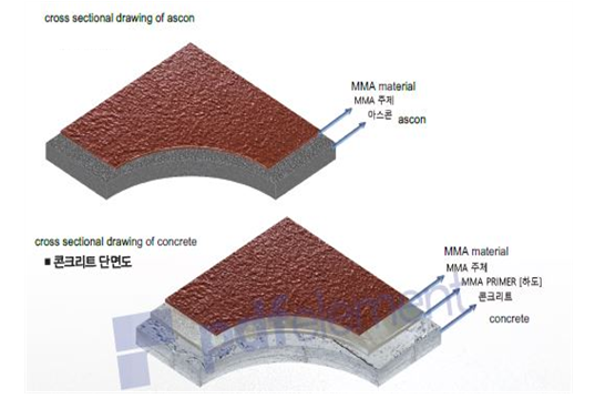 MMA resin reacts with ascon and concrete after being applied,